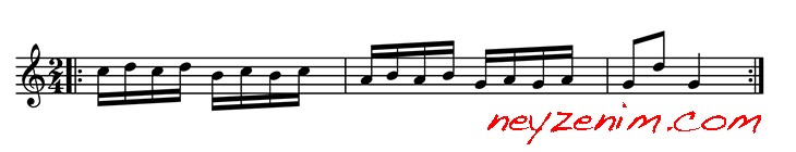 Not: Diyez ve bemol işareti donanımda ise tüm parçada diyezli ve bemollü çalınır. Eğer herhangi bir ölçü içerisinde belirtilmiş ise sadece o ölçü için geçerlidir. Diğer derse geçmemiz için şu aşamaları bitirmiş olmalıyız: -Ney tutuş pozisyonumuzu tamamladık ve artık Ney üfleme pozisyonumuzu biliyoruz. -Neyden Sol sesini çıkartmaya başladık ya da bu sesi uzun uzun üfleyebiliyoruz. -Re, #Do, Do, Si, #La, La ve Sol perdelerinin Neyde hangi pozisyonda üflendiğini ezbere biliyoruz. -Birlik nota, İkilik nota, 1 Dörtlük nota ve Sekizlik Nota değerlerini ve kaç vuruşluk nota olduklarını da ezberledik. Bu aşamaları tamamladıktan sonra 6. Dersimize başlayabiliriz. 1 2 3 4 5 6 7 8 9 10 11 12 13 14 15 | ||||||||||||||||||||||||||||||||